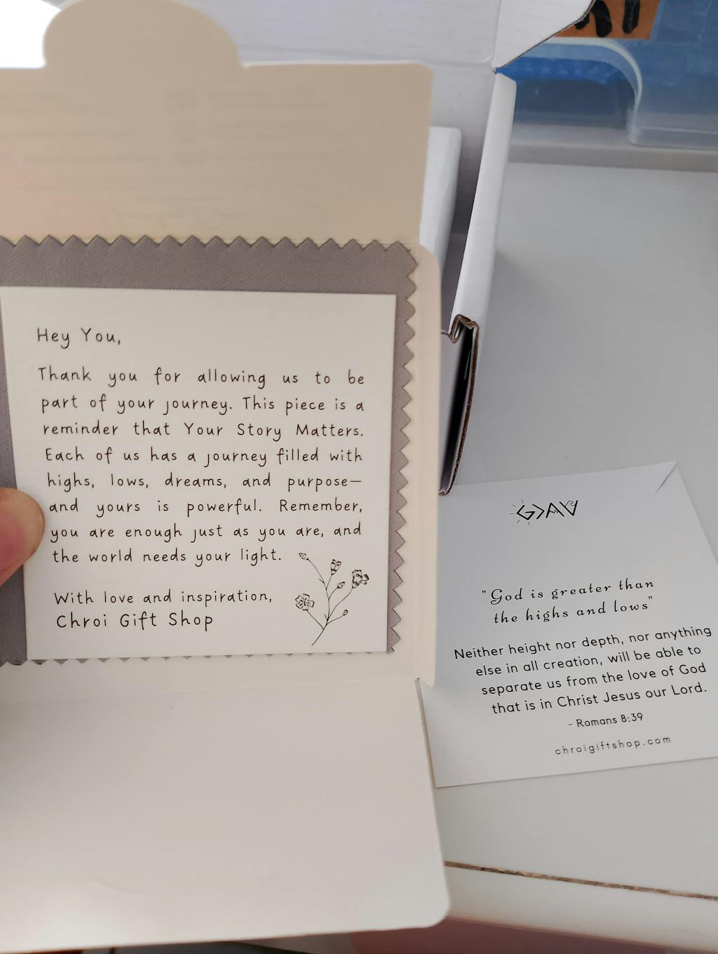 I was shock and happy to see the necklace i bought from "Chroi Gift shop" A lightweight and unobtrusive piece of jewelry (Necklace) , allowing it to be worn comfortably throughout the day. The quality of craftsmanship and the use of timeless designs will remain stylish for years to come. This contrasts with more ornate or trend-driven jewelry styles.